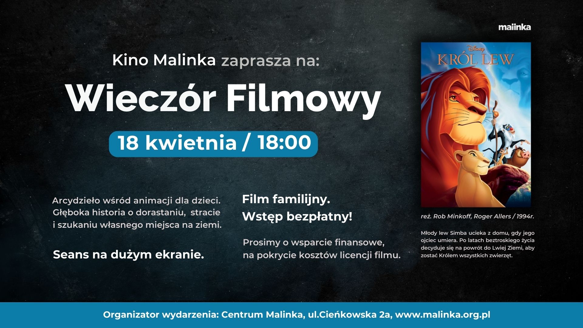 18 kwietnia odbędzie się projekcja filmu animowanego „Król Lew„.