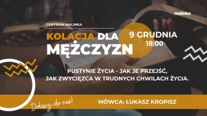Panowie! Już 9 grudnia g.18:00, odbędzie się kolejne spotkanie z cyklu Kolacja dla Mężczyzn. Naszym gościem będzie Łukasz Kropisz * Temat: „Przeciwności”, jak je przejść jak zwycięzca w trudnych chwilach życia? Oczywiście będzie też strawa dla ciała i czas na budowanie relacji. Zapraszamy! Zabierzcie ze sobą znajomych! Łukasz Kropisz: Pastor, wykładowca, menadżer. Z powołania pasjonat […]