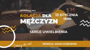 Panowie! 13 lutego ( wtorek) o godz.18:00 w Centrum Malinka, odbędzie się kolejna kolacja dla mężczyzn. Gość spotkania: Marek Cieślar – Koordynator Szkoły Biblijnej. Temat: „7 rzeczy, które nie podobają się Bogu” Zapowiada się ciekawie! Jak zawsze, w programie: wspólny śpiew, czas na rozmowy coś na ząb. Zapraszamy!