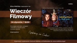 Kino Malinka zaprasza na wyjątkowy film. 24 stycznia g.18:00 w Centrum Malinka, odbędzie się projekcja filmu „Cudowny chłopak: Biały ptak„* Wstęp wolny! (będziemy wdzięczni za wsparcie finansowe tego wydarzenia: pozyskane środki zostaną przeznaczone na kolejne Wieczory Filmowe) Opis filmu z Filmweb: Minęło kilka lat od wydarzeń znanych z „Cudownego chłopaka”. Julian usunięty ze szkoły za […]