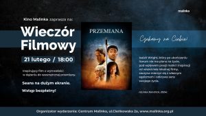 Kino Malinka zaprasza na Wieczór Filmowy. 21 lutego (sobota) godz. 18:00 w Centrum Malinka, Cieńkowska 2A, zostanie wyświetlony film „Przemiana” z 2024 r. Wstęp bezpłatny! Będziemy wdzięczni za wsparcie finansowe tego wydarzenia. Każdy Wieczór Filmowy wiąże się z zakupem licencji. Dziękujemy! Przyjdź i zabierz ze sobą znajomych. To będzie dobrze i miło spędzony czas. Zapraszamy! […]