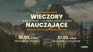 W dniach 26-27.03, w Centrum Malinka, odbędą się Wieczory Nauczające. Wykładami podzieli się pastor Kazimierz Barczuk. Temat wieczorów: Spór o Ziemię – co Biblia mówi o Ziemi? Czwartek: „Przymierze i podbój” Piątek: „Wygnanie i odkupienie” Zaczynamy o 18:00 Zapraszamy!